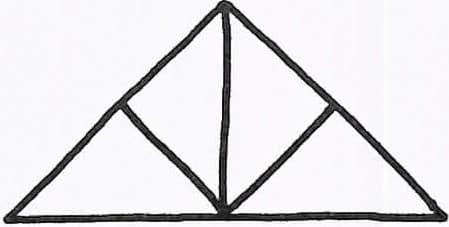 En este caso, pasa lo mismo que en el caso anterior se deben contar todos los triángulos que se forman. Se debe sumar el triángulo mayor, más los 4 triángulos en que está dividido el triángulo mayor, más los dos triángulos formados por la línea que! divide al triangulo mayor por la mitad, dándonos un total de 7.
